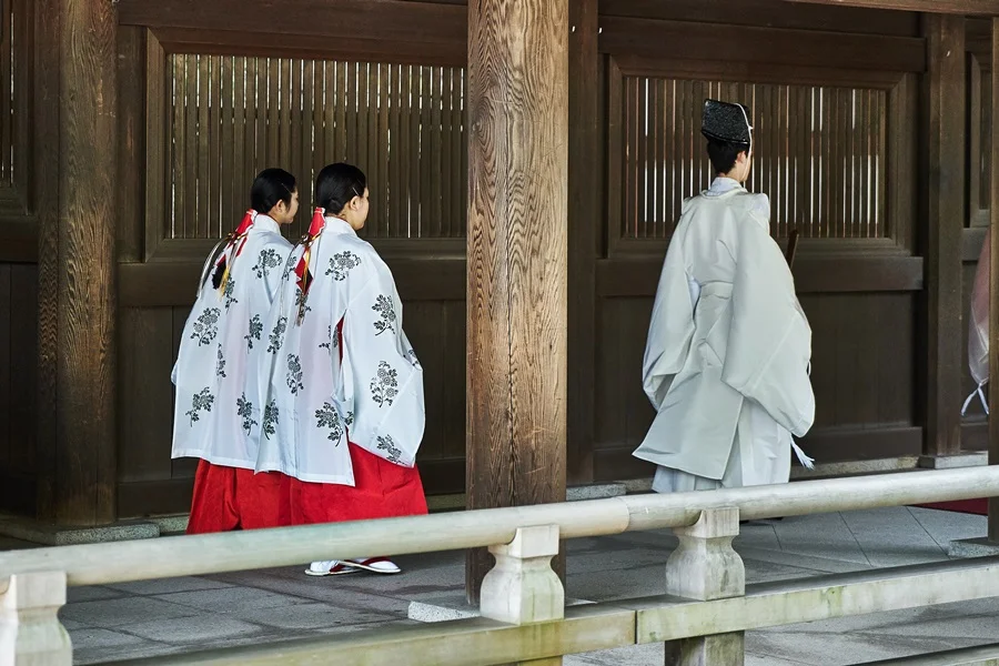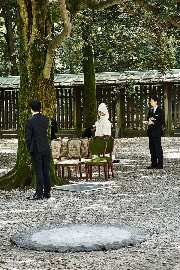 Japan was the first nation in far east to open its doors to foreigners and western civilizations. It has been well documented that Japanese wore western apparels and read western books before any other nation in Asia. Nevertheless, during all those centuries Japanese wedding ceremony has never been deviated from the traditional Shinto style. Quite intriguing to learn that unlike Korean counterpart, western/Christian style wedding is almost non-existent in Japan. (Picture above shows the groom and his entourage entering the Shinto wedding ceremony)