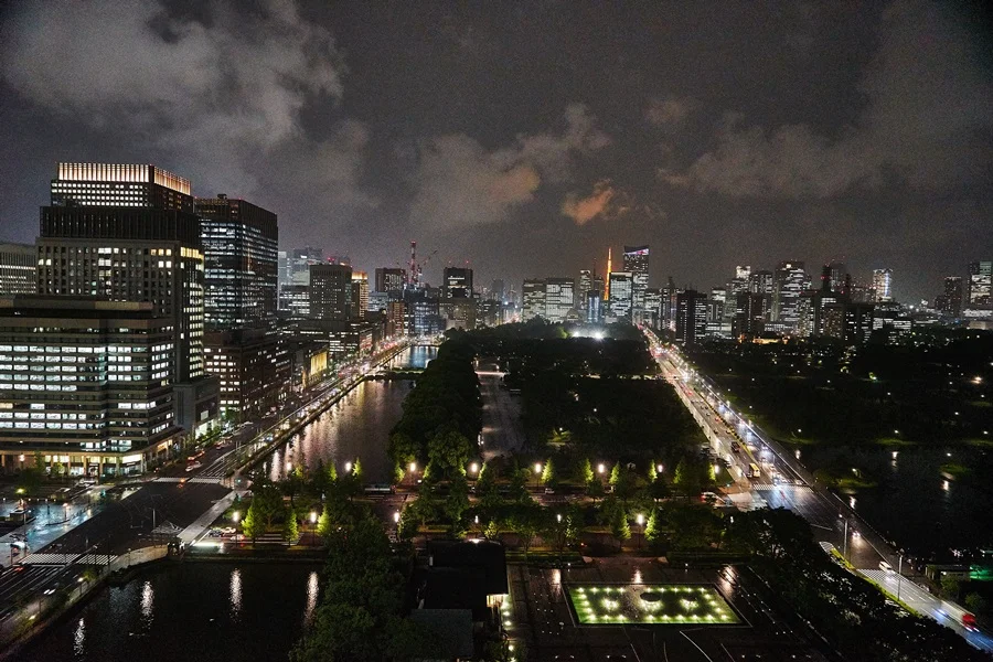 Tokyo by night from the balcony of 'Tokyo Parasu Hoteru'.