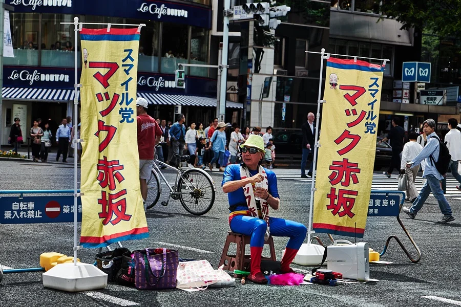 ...and my guess is that this 'unorthodox' middle-aged super hero (of Tokyo) is none other than one of the husbands just diagnosed with such hypertension. Apparent demonstration against wives coming within few miles radius of Ginza (??)