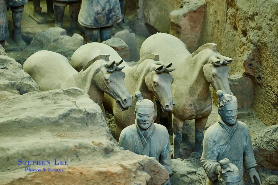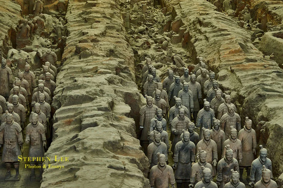 중국 대륙을 처음 통일한 진시황릉을 지키던 황토군 (병마용)들의 위용입니다. 현재 발굴된 병정들과 말들이 (원 위치에서) 바로 이렇게 방문객들을 맞습니다.