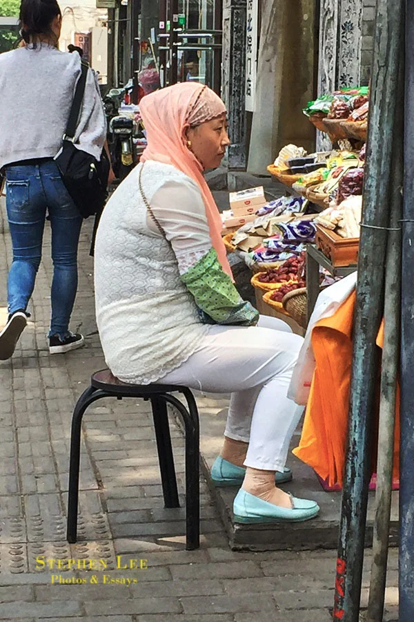 매장 주인들은 물론, 점원들도 모두 이슬람 교인인 셈인데, 사진 찍히는 걸 싫어해 조심스레 멀리서만 촬영이 가능했습니다. 복장이나 특히 여인들 머리의 히잡을 통해 전통 중국 문화와는 많이 다른 그들의 풍습을 볼 수 있음이 이채로웠습니다.